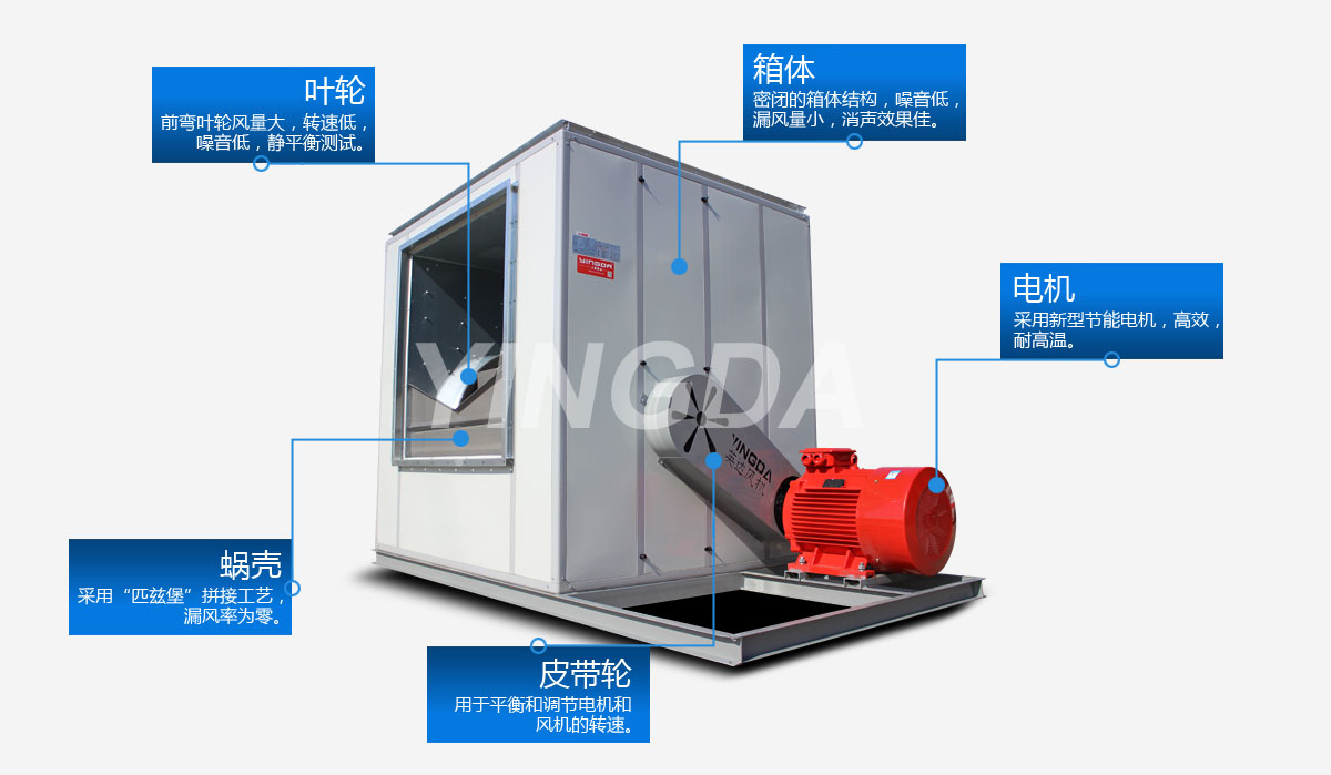 英達風機蝸殼采用流線型雙進風結構,“匹茲堡”拼接工藝,漏風率為零;雙側板一次成型,精度高,減小裝配后尺寸誤差;葉片一次沖壓 成型,專門夾具確保葉片安裝精確定位。
